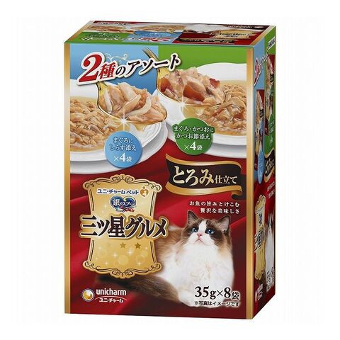 ユニチャーム 銀のスプーン 三ツ星グルメ パウチ とろみ仕立て まぐろにしらす添え&まぐろ・かつおにかつお節添え 35g×8袋【ポイント10倍】