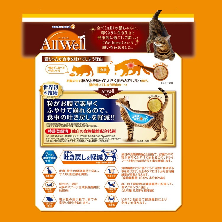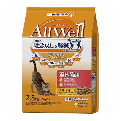 ユニチャーム AllWell 室内猫用 チキン味挽き小魚とささみフリーズドライパウダー入り 2.5kg (500g×5袋)【ポイント10倍】 【送料無料】