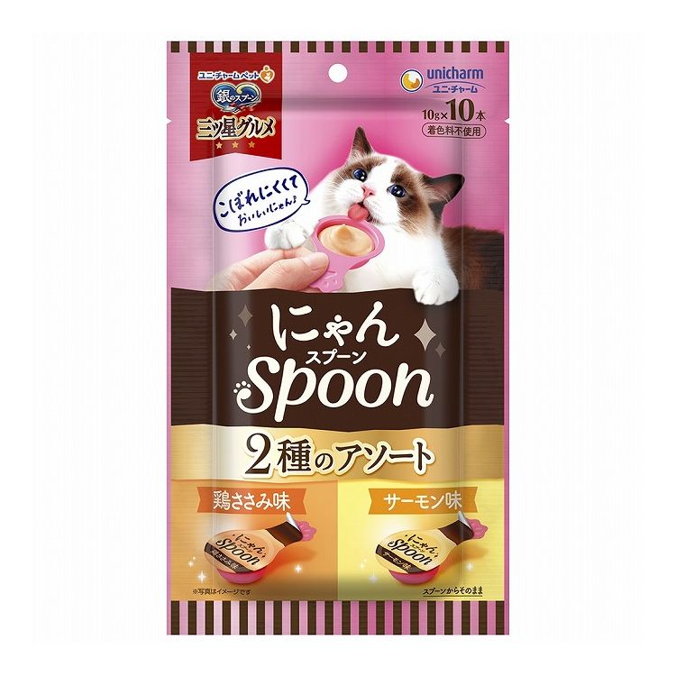 ユニチャーム 銀のスプーン三ツ星グルメおやつ にゃんSpoon2種のアソート鶏ささみ&サーモン味 100g【ポイント10倍】