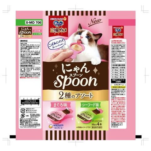 ユニ・チャーム 銀のスプーン三ツ星グルメおやつ にゃんSpoon 2種のアソートまぐろ&シーフード味 40g【ポイント10倍】