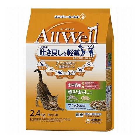 ユニチャーム AllWell 室内猫用 贅沢素材入りフィッシュ味天然小魚とささみフリーズドライ入り 2.4kg (480g×5袋)【ポイント10倍】 【送料無料】