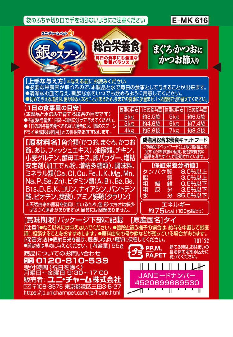 ユニチャーム 銀のスプーンパウチ 総合栄養食 まぐろ・かつおにかつお節入り 55g【ポイント10倍】