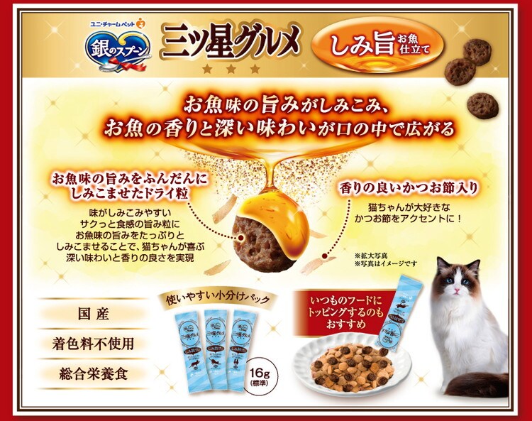 ユニチャーム 銀のスプーン三ツ星グルメ しみ旨お魚仕立てまぐろ・たい味にかつお節添え 192g【ポイント10倍】