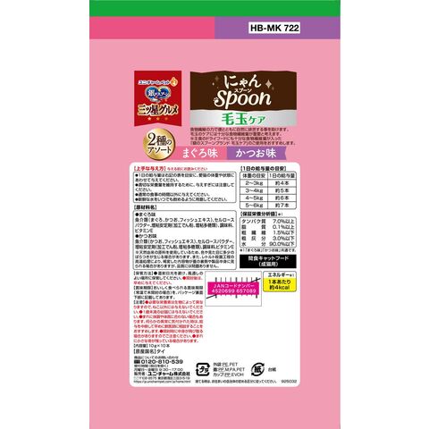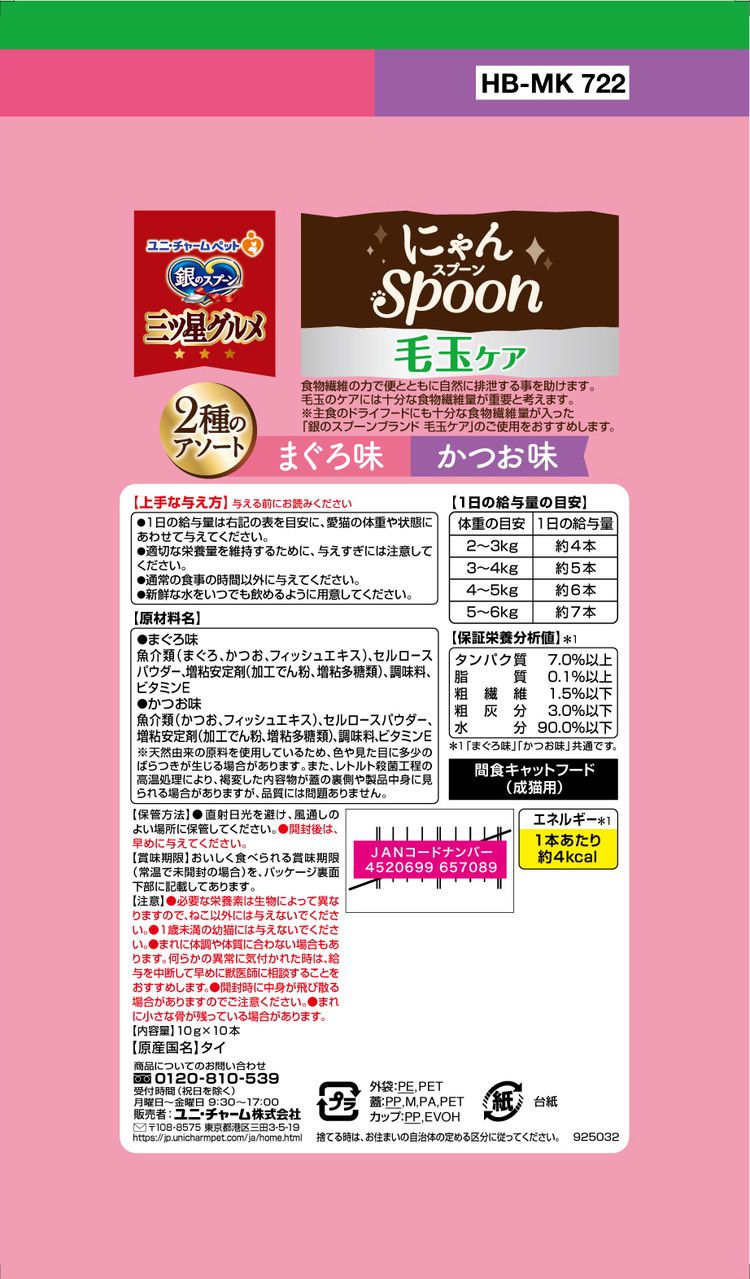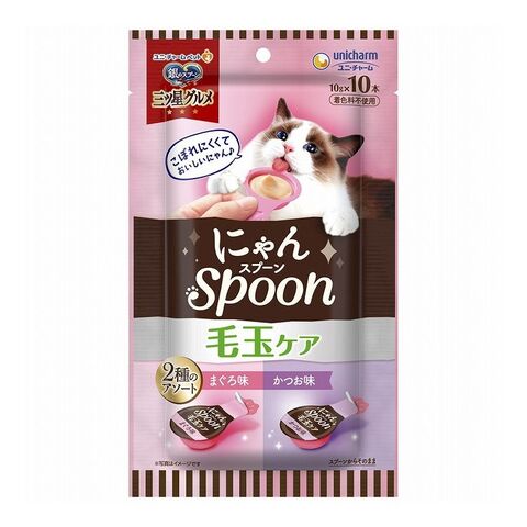 ユニチャーム 銀のスプーン三ツ星グルメおやつ にゃんSpoon毛玉ケア2種のアソートまぐろ&かつお味100g【ポイント10倍】