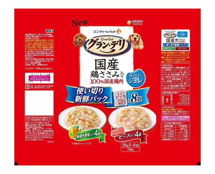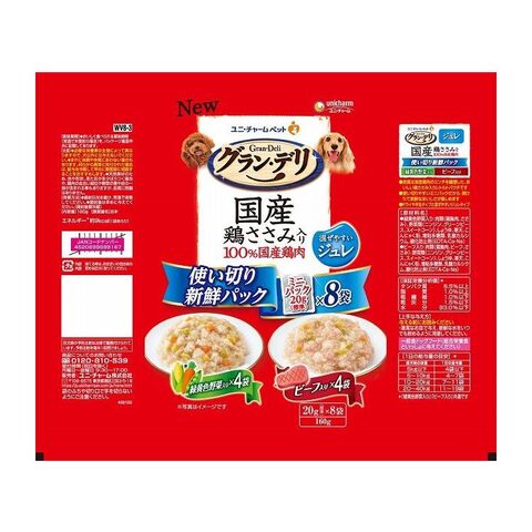 ユニチャーム グラン・デリ 国産鶏ささみ入りパウチ 使い切り新鮮パックジュレ 成犬用 緑黄色野菜入り&ビーフ入り160g(20g×8)【ポイント10倍】