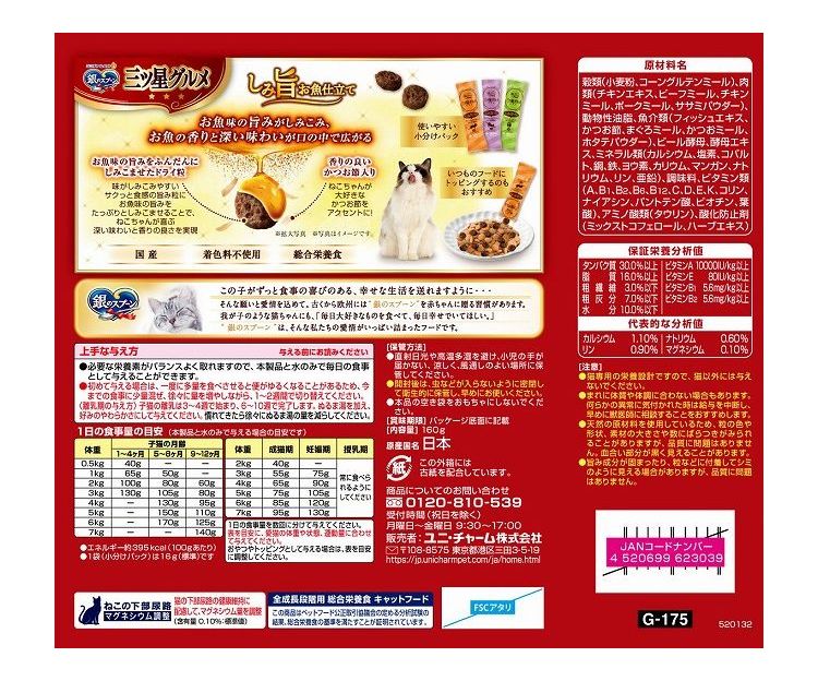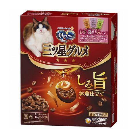 ユニチャーム 銀のスプーン三ツ星グルメ しみ旨お魚仕立て お魚・鶏ささみレシピ 3種のアソート 160g【ポイント10倍】