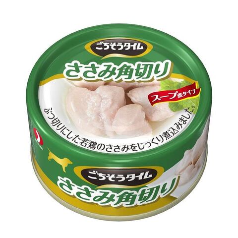 ヘルシーでやわらかい新鮮な若鶏ささみをそのまま贅沢に角切りし、おいしく調理しました。素材のよさを活かした味でワンちゃんも大満足。スープ仕立て。