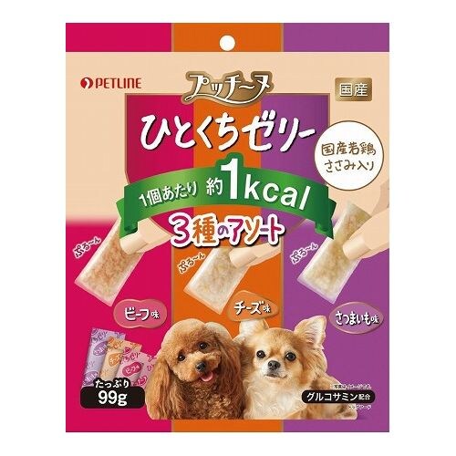 ペットライン プッチーヌ ひとくちゼリー 国産若鶏ささみ入り3種のアソート 99g【ポイント10倍】