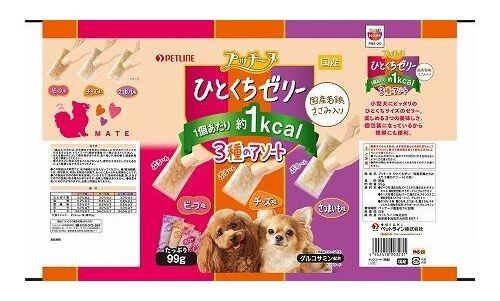 小型犬にピッタリのひとくちサイズのゼリー。個包装になっているから携帯にも便利。1個あたり約1kcalなので体重が気になる愛犬にも安心して与えられます。
