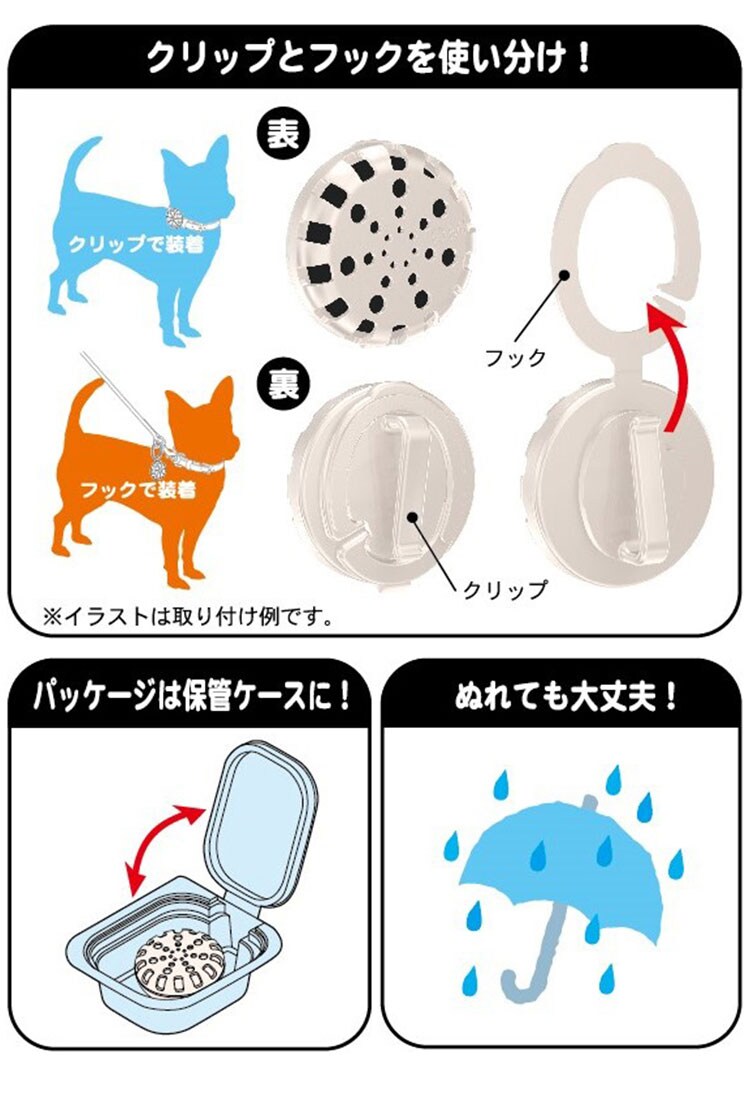 クリップとフックの選べる装着方法 有効成分:メトフルトリン(ピレスロイド系) 有効期間:150日 無香 ぬれても大丈夫