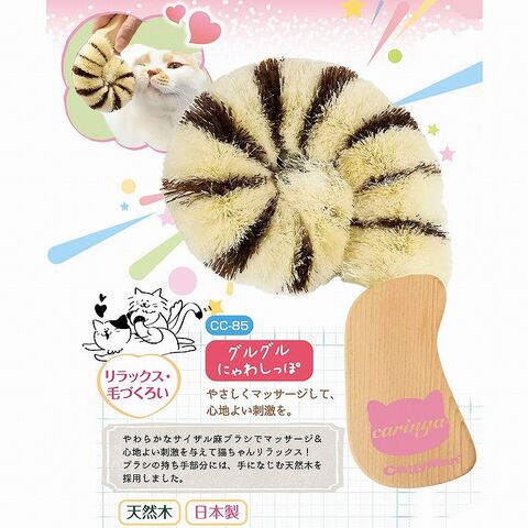 天然素材のサイザル麻とシュロを使用/握りやすく手になじむ天然木/猫の尻尾をイメージしたかわいいデザイン/やわらかなサイザル麻とほどよいかたさのシュロで心地よい刺激のマッサージで猫ちゃんリラックス/ブラッシングとマッサージをしながら猫ちゃんとコミュニケーションを/
