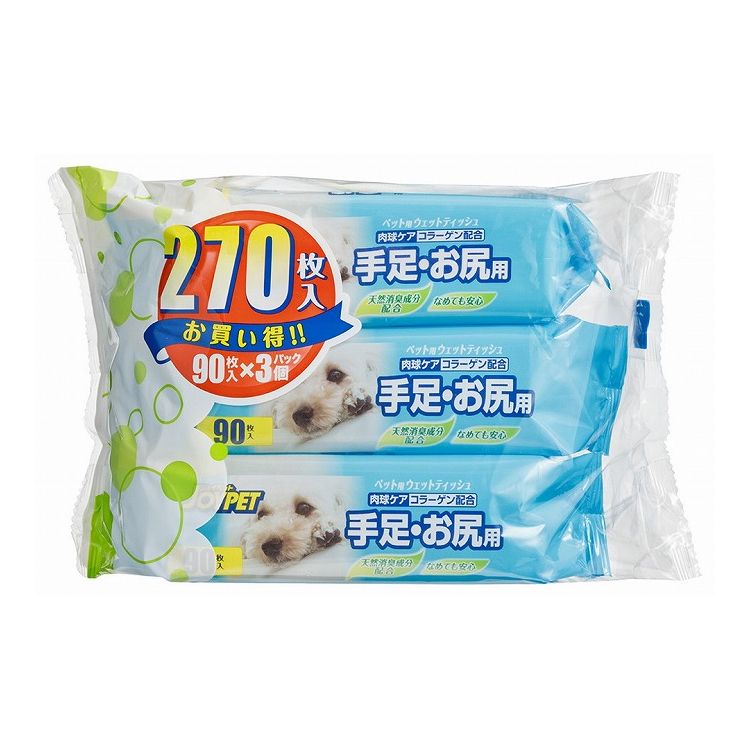 アースペット ウェットティッシュ 手足・お尻用 90枚×3個 ペット用品 ペットグッズ【ポイント10倍】