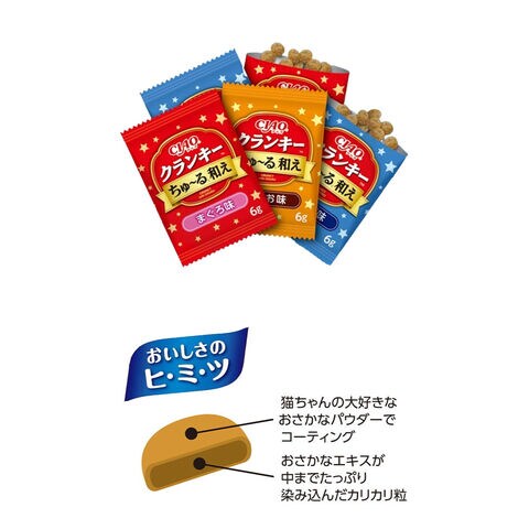 ・おいしさのヒミツは、「ちゅ~る」が中までを染み込んだカリカリ粒に猫ちゃんの大好きなおさかなパウダーで粒をコーティング♪