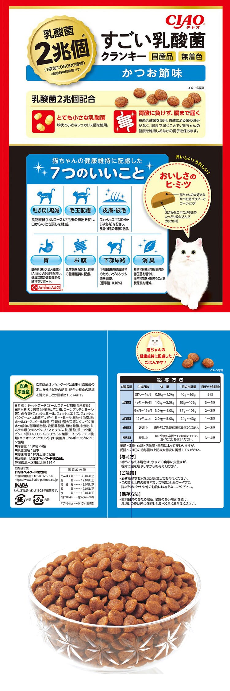 いなばペットフード CIAO すごい乳酸菌クランキー かつお節味 760g(190g×4袋)【ポイント10倍】