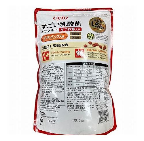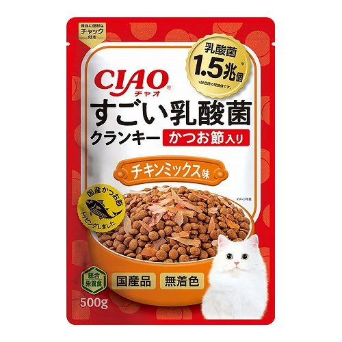 いなばペットフード CIAO すごい乳酸菌クランキー かつお節入り チキンミックス味 500g【ポイント10倍】
