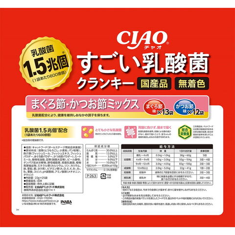 【4個セット】 CIAO すごい乳酸菌クランキー まぐろ節・かつお節ミックス 22g×25袋 x4【ポイント10倍】 【送料無料】