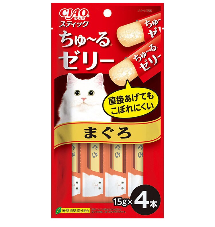 ・猫ちゃんが大好きなまぐろをゼリーでコーティングし、食べやすいようスティック状にしました。