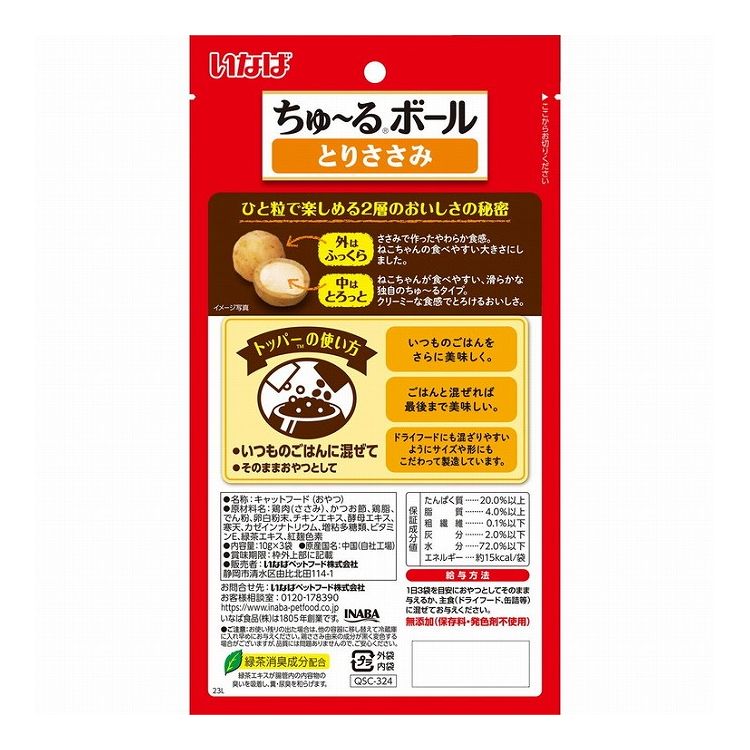 【12個セット】 いなばペットフード ちゅーるボール とりささみ 10g×3袋【ポイント10倍】 【送料無料】