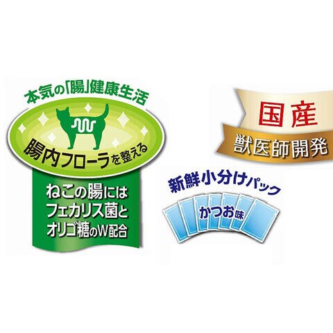 健康面で特に気になることを元気な時からケアし、健康維持できるよう独自の栄養設計で作られたプレミアムキャットフードです。乳酸菌の一種「フェカリス菌」とオリゴ糖を配合、腸内フローラを良好な状態に。マグネシウムを調整し、成猫に多いストルバイト尿石に配慮。国産削り節ミールを使用した愛猫も喜ぶうまみかつお味。