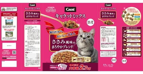 ささみ味をベースに愛猫の大好きな味をミックス、βーグルカン・グルコサミン・ハーブを配合。猫の下部尿路の健康維持に配慮してマグネシウムを調整。