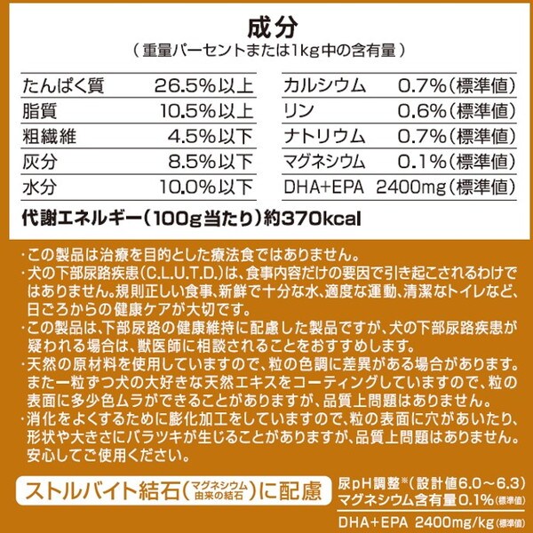 毎日の食事で下部尿路の健康維持に配慮したドッグフード!