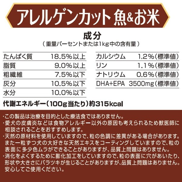・1歳からの肥満傾向の愛犬や避妊・去勢した愛犬の健康維持に配慮し、脂肪分とカロリーを調整。