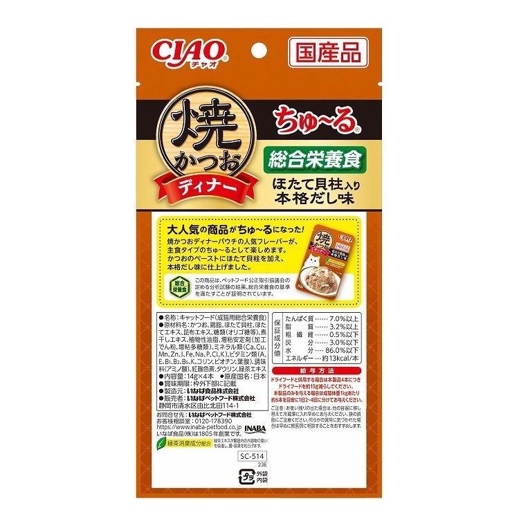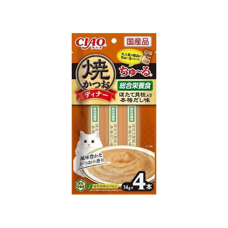 【12個セット】 焼かつおディナーちゅ~る ほたて貝柱入り 本格だし味 14g×4本 x12【ポイント10倍】 【送料無料】
