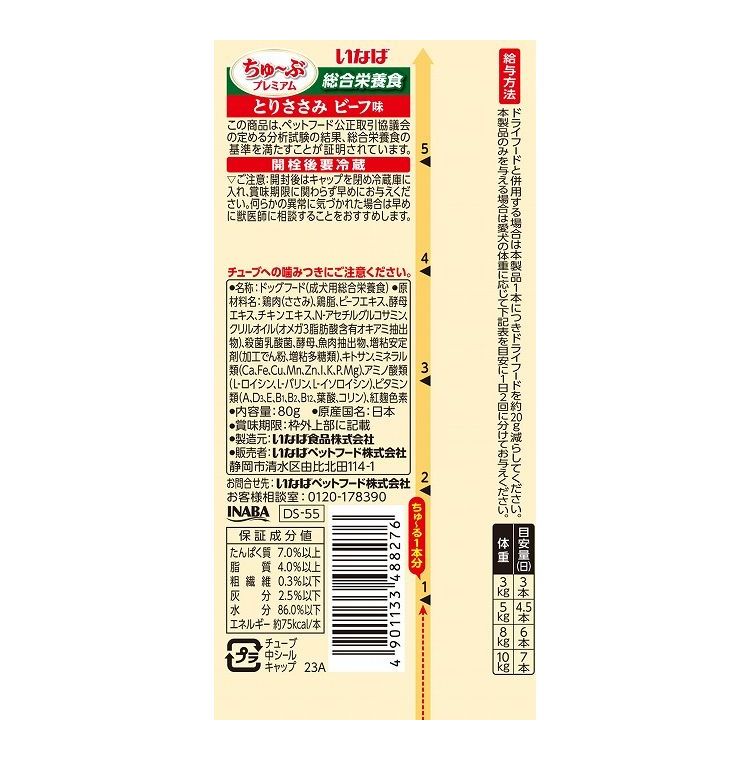 【6個セット】 いなば ちゅ~ぶプレミアム とりささみ ビーフ味 80g x6【ポイント10倍】 【送料無料】