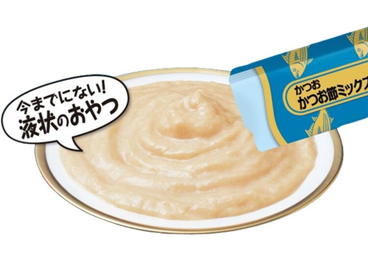 かつお、かつお節エキス、糖類(オリゴ糖等)、植物性油脂、増粘安定剤(加工でん粉、増粘多糖類)、ミネラル類(Na、P、Cl)、調味料(アミノ酸)、ビタミンE、緑茶エキス、カラメル色素]