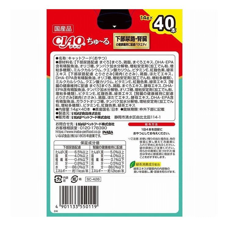 【2個セット】 いなばペットフード CIAOちゅ~る 下部尿路腎臓の健康維持に配慮バラエティBOX 14g×40本 【ポイント10倍】 【送料無料】