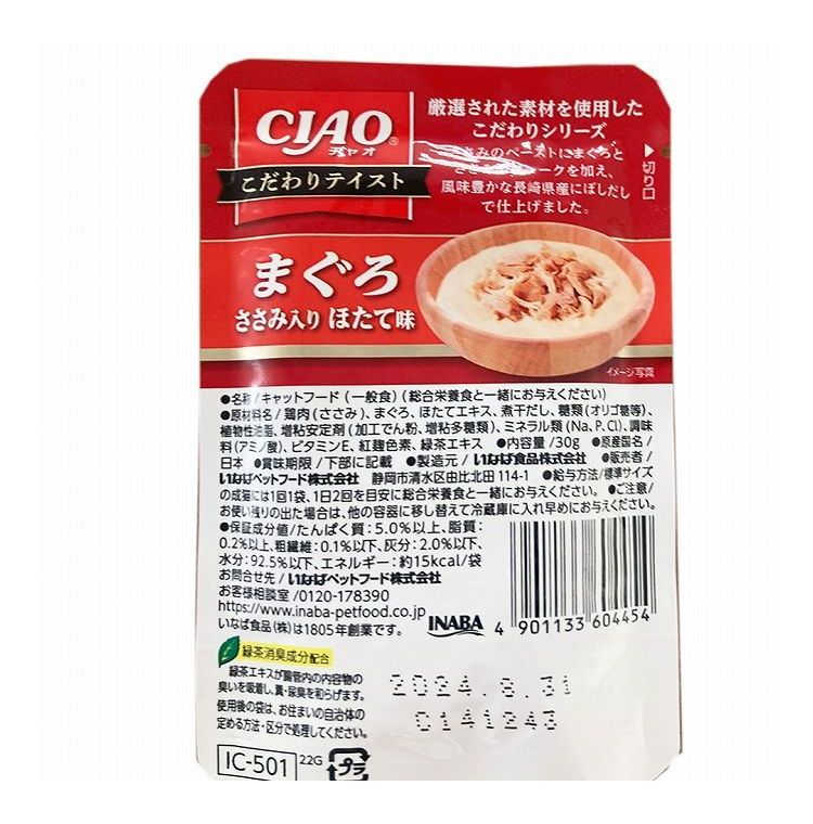 【24個セット】 CIAO こだわりテイスト まぐろ ささみ入りほたて味 30g x24【ポイント10倍】 【送料無料】