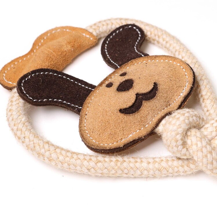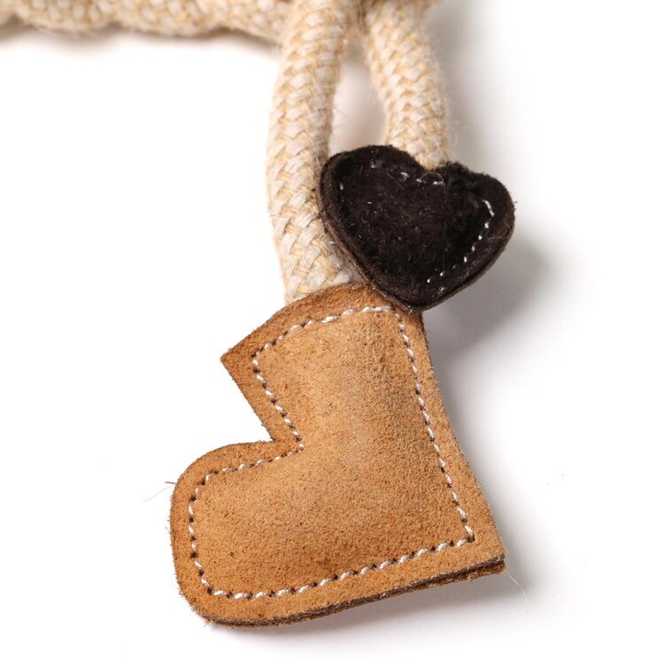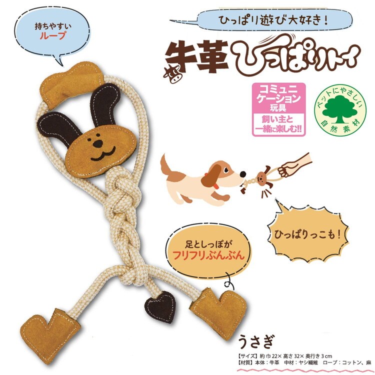 ・夢中でカミカミしちゃう牛革と編み込みロープを使用した、かわいいうさぎ型のおもちゃです