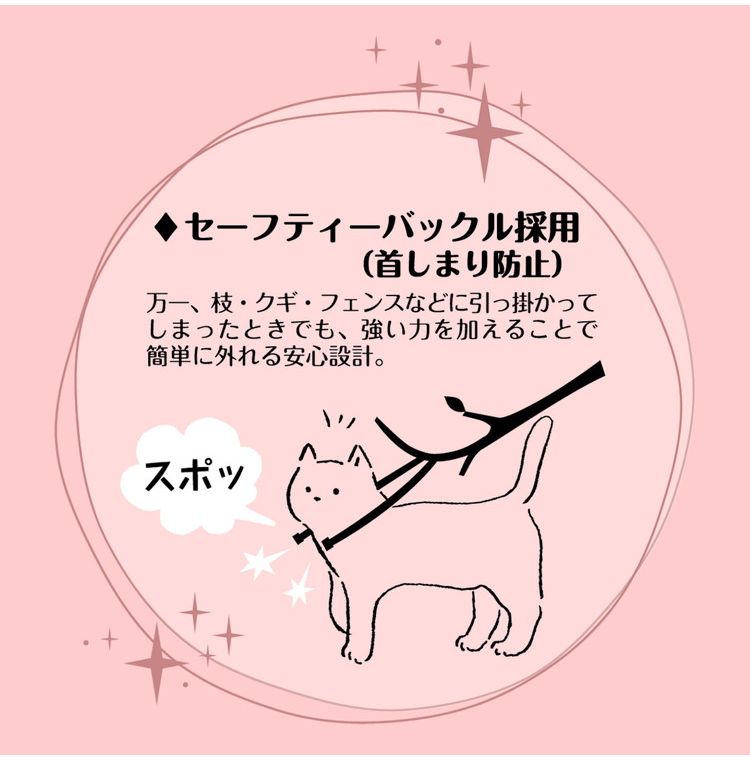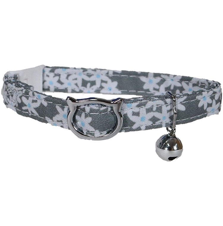 ル・コリエ メヌエットモードシリーズは上品でコケティッシュなデザイン。アイスグレーに無数の白い花をちりばめクールなイメージに仕上げました。ツンデレのネコちゃんにお似合いかもしれません。ベルトスライダーはキャティーマンオリジナルのネコちゃん型。セーフティーバックルは枝などに引っ掛かっても外れやすくなっています。おしゃれだけじゃない、安全性も高いネコ首輪です。