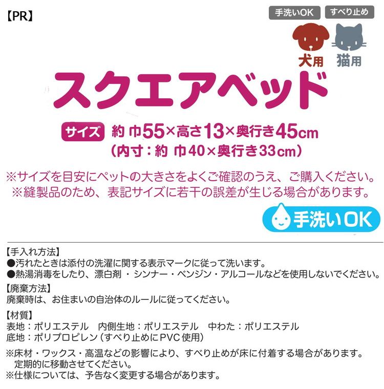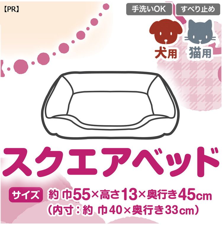 ゆったり体をあずけられ、のんびりくつろげる。夜空をイメージした月と星の柄がかわいい、スクエア型の犬猫用ベッド。底面は滑り止め付きで、フローリングでもズレにくい。