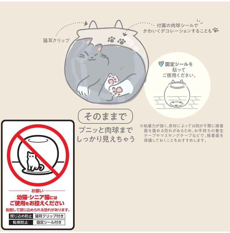 ・転倒時の閉じ込め防止の猫耳クリップ付き。
