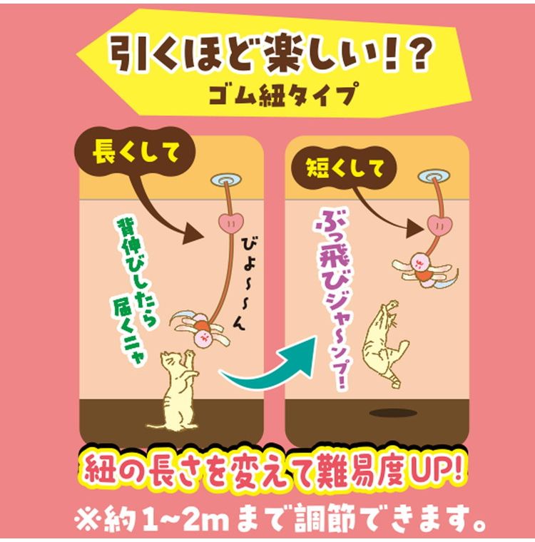 ・ゴム紐の長さは約1~2m間で自由に調節できます。