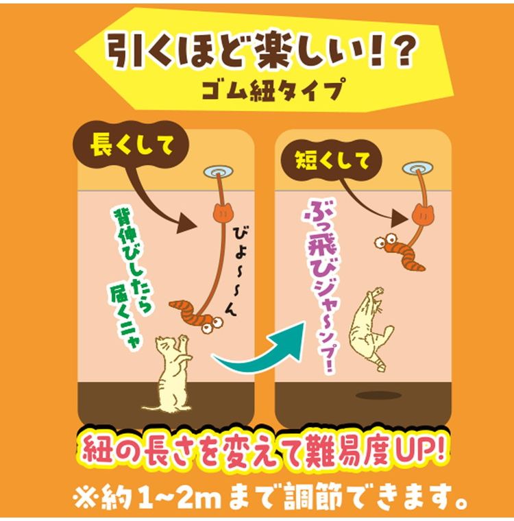 ・にょろにょろしっぽがにゃんこを誘う!ゴム紐で吊るす猫じゃらし。