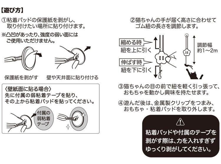 ・糊残りしない、専用の粘着パッドでお部屋の壁や窓、天井に取り付け可能です。