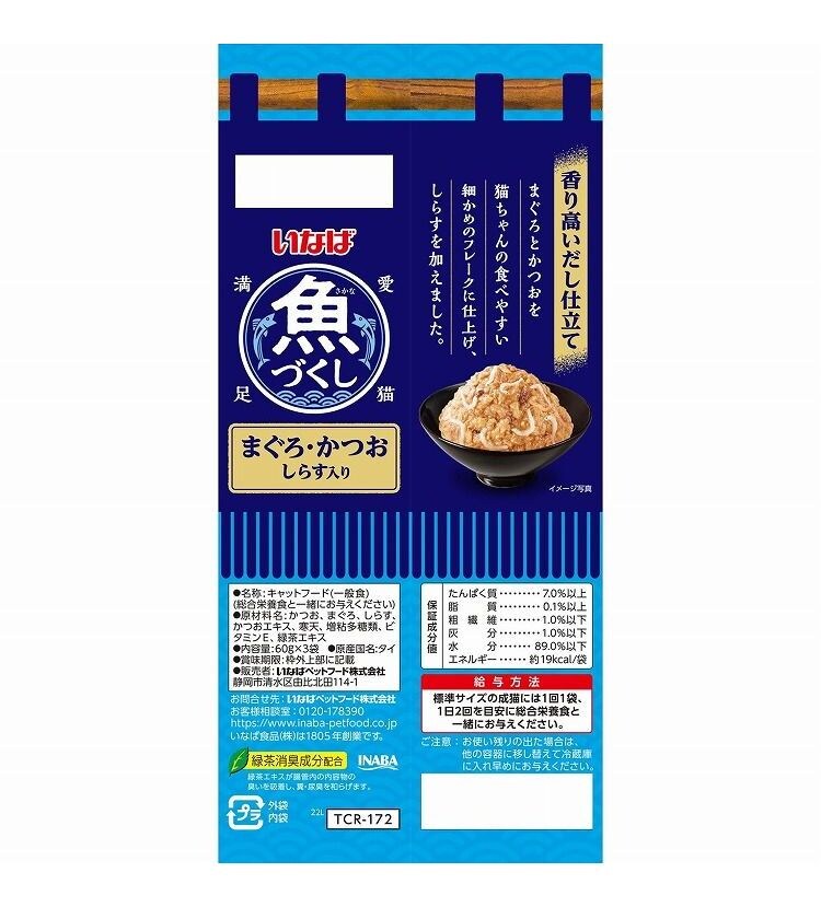 【24個セット】 いなば 魚づくし まぐろ・かつお しらす入り 60g×3袋 x24 72袋 いなば食品 いなばペットフード ウェットフード 猫用 猫ごはん まとめ売り セット販売 まとめ買い【送料無料】
