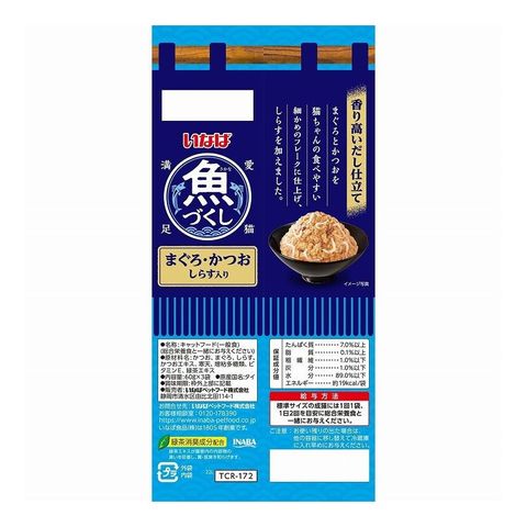 かつお、まぐろ、しらす、かつおエキス、寒天、増粘多糖類、ビタミンE、緑茶エキス