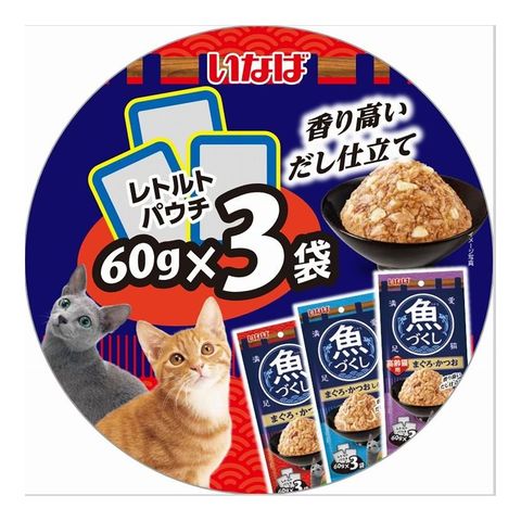 【12個セット】 いなば 魚づくし まぐろ・かつお 高齢猫用 60g×3袋 x12 36袋 いなば食品 いなばペットフード ウェットフード 猫用 猫ごはん まとめ売り セット販売 まとめ買い【送料無料】