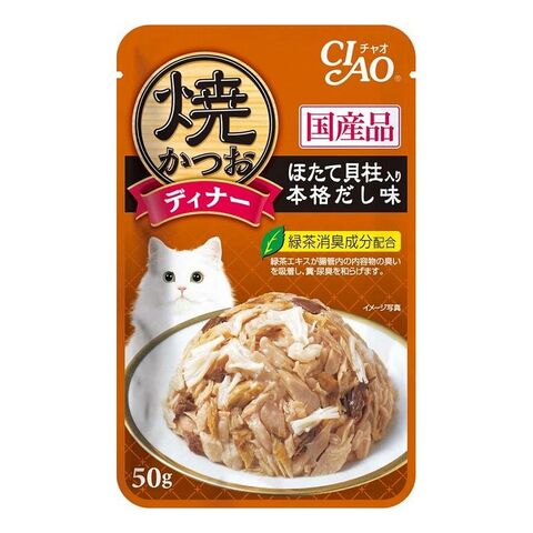 【48個セット】 CIAO 焼かつおディナー ほたて貝柱入り 本格だし味 50g x48【ポイント10倍】 【送料無料】
