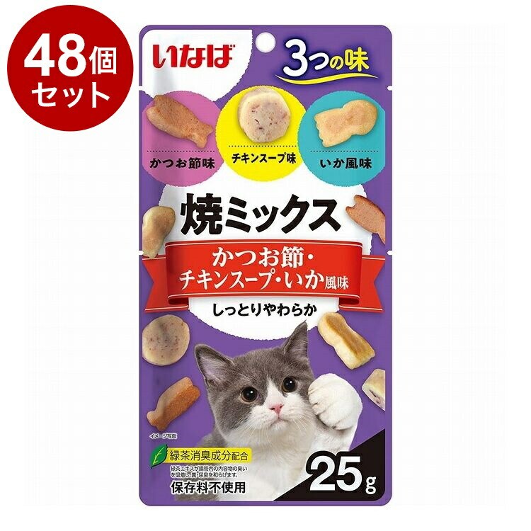 【48個セット】 いなば 焼ミックス3つの味 かつお節・チキンスープ・いか風味 25g x48【ポイント10倍】 【送料無料】