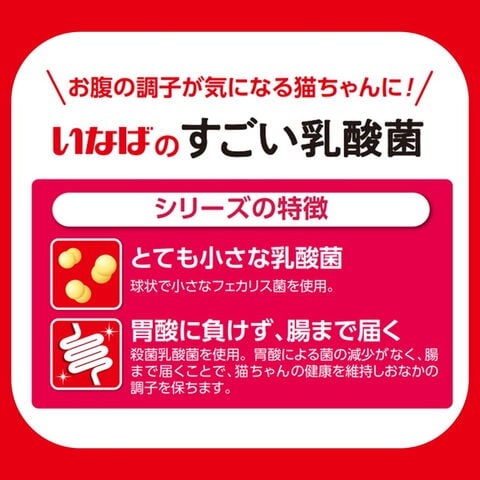 ・1袋に乳酸菌1000億個配合により、猫ちゃんの健康を維持し、お腹の調子を保ちます。