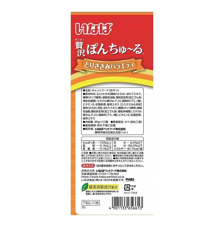 【2個セット】 いなば 贅沢ぽんちゅ~る とりささみバラエティ 35g×10個 x2【ポイント10倍】 【送料無料】