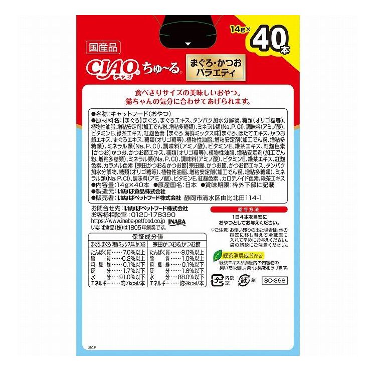 【2個セット】 いなばペットフード CIAOちゅ~る まぐろ・かつおバラエティBOX 14g×40本入 【ポイント10倍】 【送料無料】