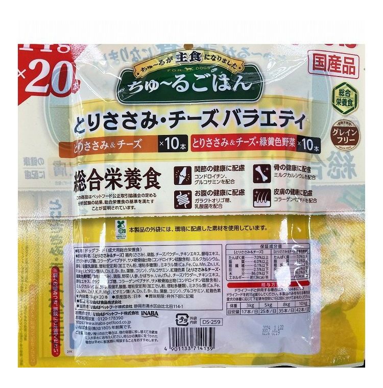 【4個セット】 いなば ちゅ~るごはん とりささみ・チーズバラエティ 14g×20本 x4【ポイント10倍】 【送料無料】
