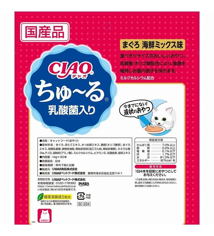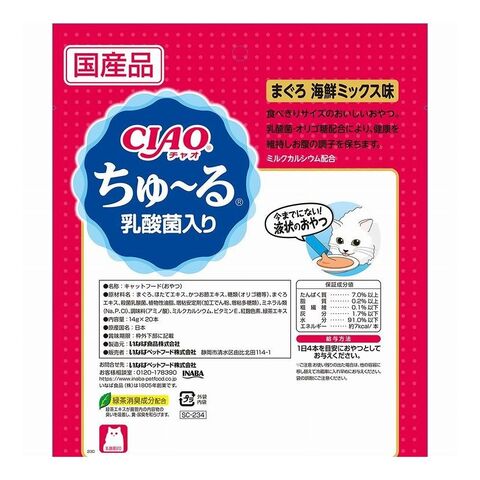 【2個セット】 CIAO ちゅ~る 乳酸菌入り まぐろ 海鮮ミックス味 14g×20本 x2【ポイント10倍】 【送料無料】