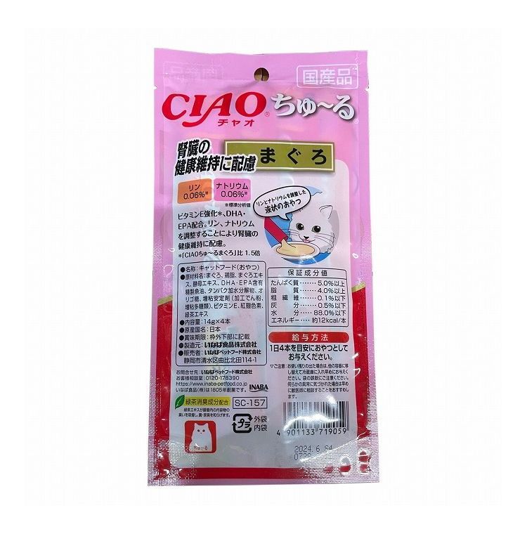 【24個セット】 CIAO ちゅ~る 腎臓の健康維持に配慮 まぐろ 14g×4本 x24【ポイント10倍】 【送料無料】