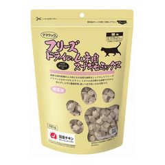 鶏肉(ささみ)、いか、いかエキス、タンパク加水分解物、糖類(オリゴ糖等)、植物性油脂、増粘剤(加工でん粉)、ミネラル類、増粘多糖類、調味料(アミノ酸等)、ビタミンE、紅麹色素、緑茶エキス